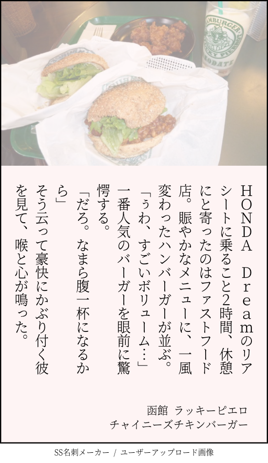 ツイッターの企画「ご当地美味いものSS」にて